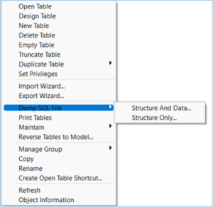 เมื่อผู้พัฒนาระบบต้องการอัปเดตฐานข้อมูลเครื่อง Production ให้ใช้วิธีเปิดโปรแกรม Navicat เลือกฐานข้อมูลเครื่อง Develop คลิกขวาตารางที่ต้องอัปเดตไปยังเครื่อง Production เลือก Dump SQL File และเลือกว่าต้องการอัปเดตตารางพร้อมข้อมูล หรือตารางอย่างเดียว