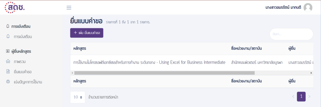 - ระบบสารสนเทศในการลงทะเบียนอบรม/การยกเลิกการลงทะเบียน