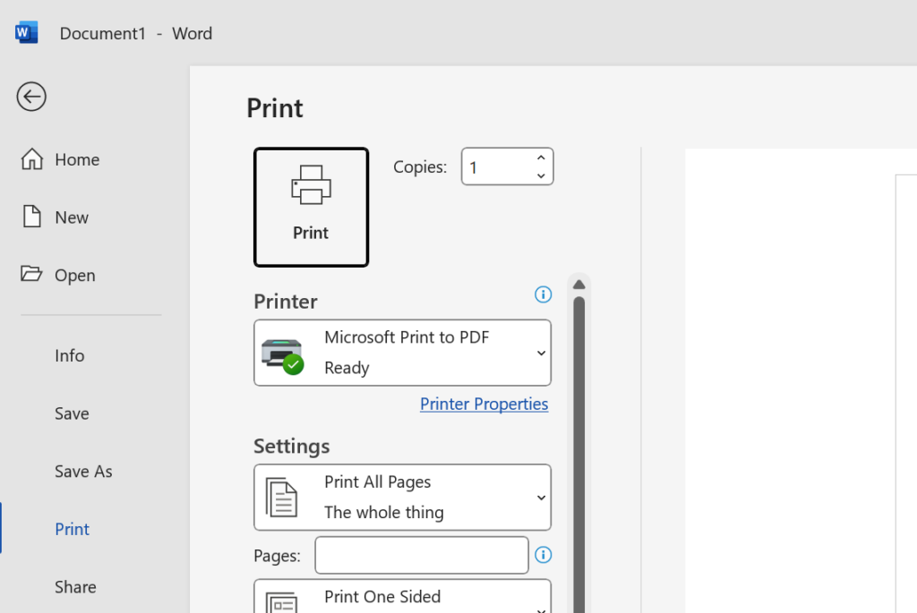 หากคุณต้องการพิมพ์เอกสาร ให้ใช้ Ctrl + P เพื่อเปิดกล่องการพิมพ์ ทำให้การพิมพ์ง่ายและรวดเร็วขึ้น