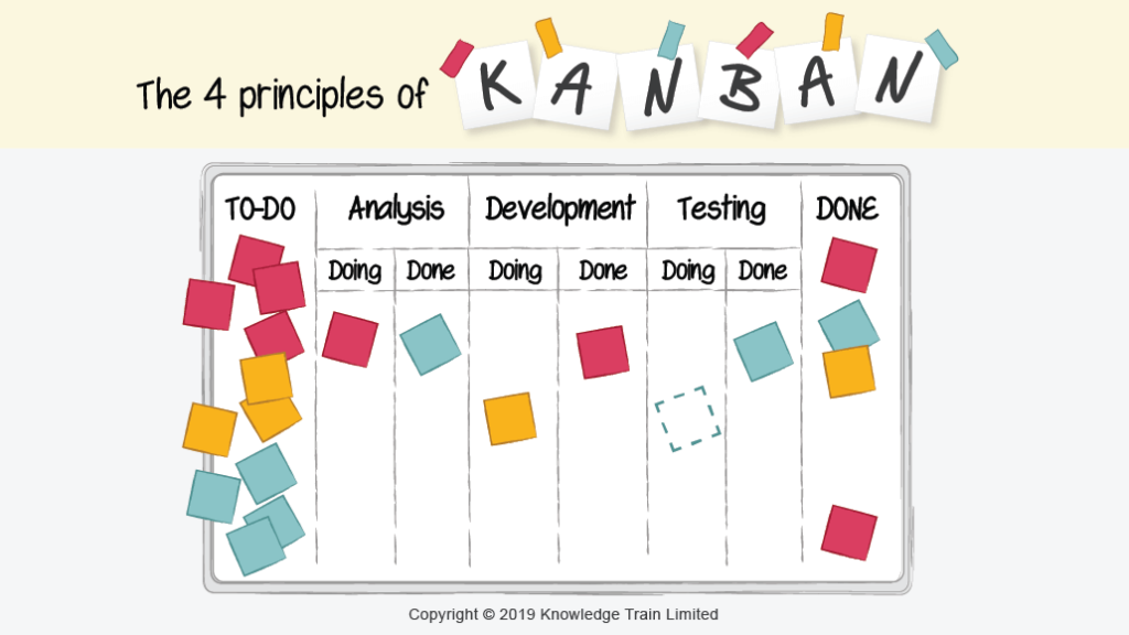 Kanban: Kanban เป็นวิธีการที่เน้นการมองเห็นและจัดการงานที่กำลังดำเนินอยู่ โดยใช้บอร์ด Kanban เพื่อช่วยให้ทีมสามารถระบุคอขวดของงาน, การจัดลำดับความสำคัญของงาน และปรับปรุงประสิทธิภาพของกระบวนการทำงาน