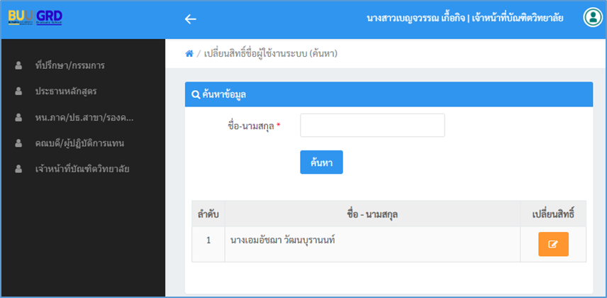 3 เมื่อผู้ดูแลระบบคลิกเมนูเปลี่ยนสิทธิ์ชื่อผู้ใช้งานระบบ (สำหรับลงนามให้อาจารย์ที่หมดสัญญา)