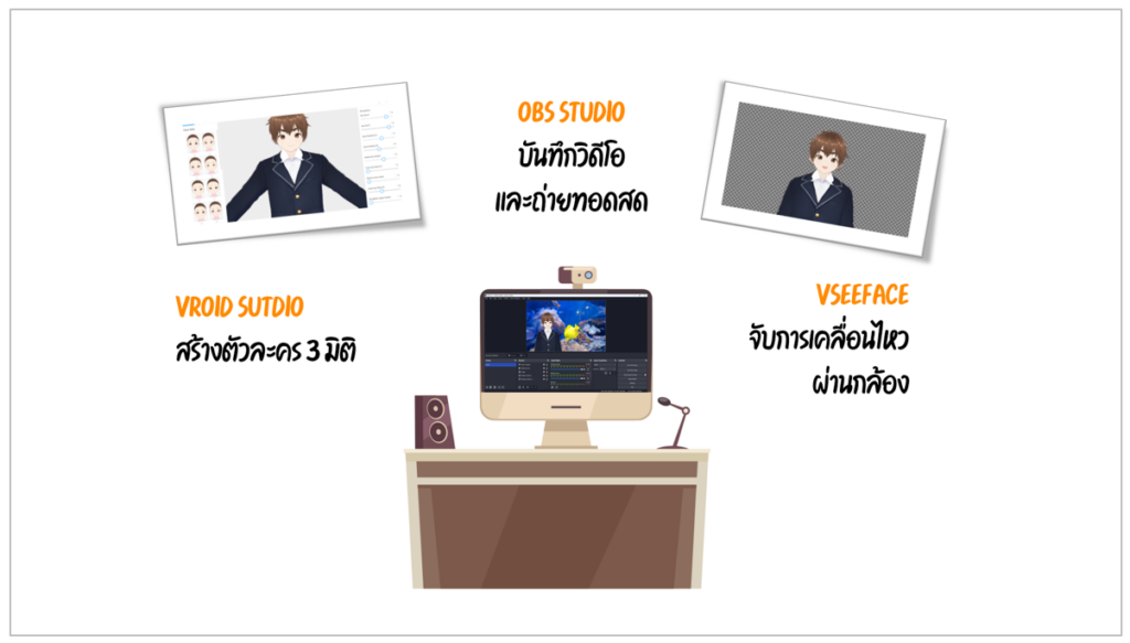 VTuber หรือ Virtual YouTuber เป็นคำที่ใช้เรียกผู้ที่สร้างสรรค์เนื้อหาวิดีโอโดยใช้ตัวละครสมมติเป็นผู้ดำเนินรายการแทนการแสดงใบหน้าจริง ซึ่งการผลิตสื่อวิดีทัศน์โดยใช้ตัวละครสมมติเป็นผู้ดำเนินรายการ สามารถทำได้โดยอาศัยเครื่องมือหลัก 3 เครื่องมือ ได้แก่ VRoid Studio VSeeface และ OBS Studio