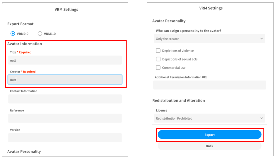- เลือก Export as VRM แล้วคลิก Export