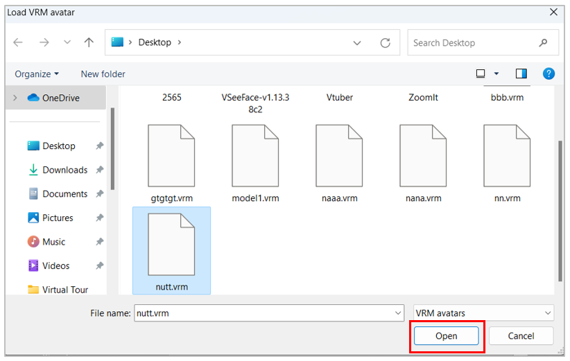 - เลือกไฟล์ตัวละครสมมติ แล้วคลิก Open
