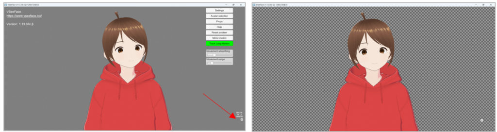 VSeeface ใช้จับการเคลื่อนไหวของร่างกายผู้พูดผ่านกล้อง (ดาวน์โหลดมาติดตั้งบนเครื่องคอมพิวเตอร์ได้ที่ https://www.vseeface.icu)