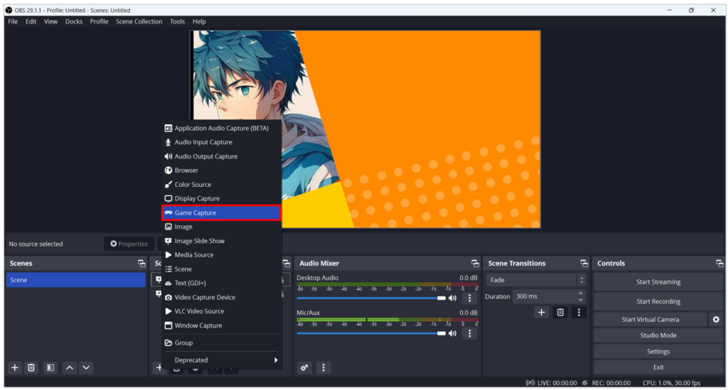 - เลือก Game Capture