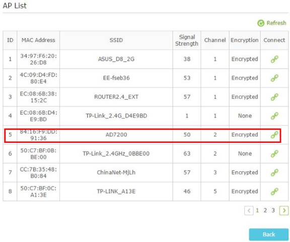 (3) คลิก SCAN หา SSID เราเตอร์ของหลักและคลิก Connect
