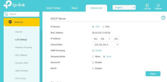 3. กำหนดค่าที่อยู่ IP ของเราเตอร์และปิดการใช้งาน DHCP: