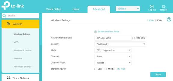 (1) ไปที่ Advanced>Wireless>Advanced Settings. เลือก 2.4GHz.