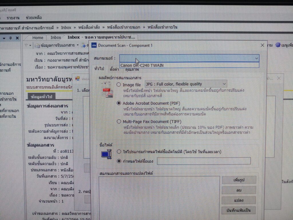 1.ระบบ e-doc ค้นหาเครื่อง scanner ไม่เจอ เวลาสั่ง scan เอกสาร แล้วระบบ e-doc จะ error และปิดตัวระบบลง ทำให้ใช้งานระบบต่อไปไม่ได้ ต้องทำการเรียกใช้งานระบบใหม่