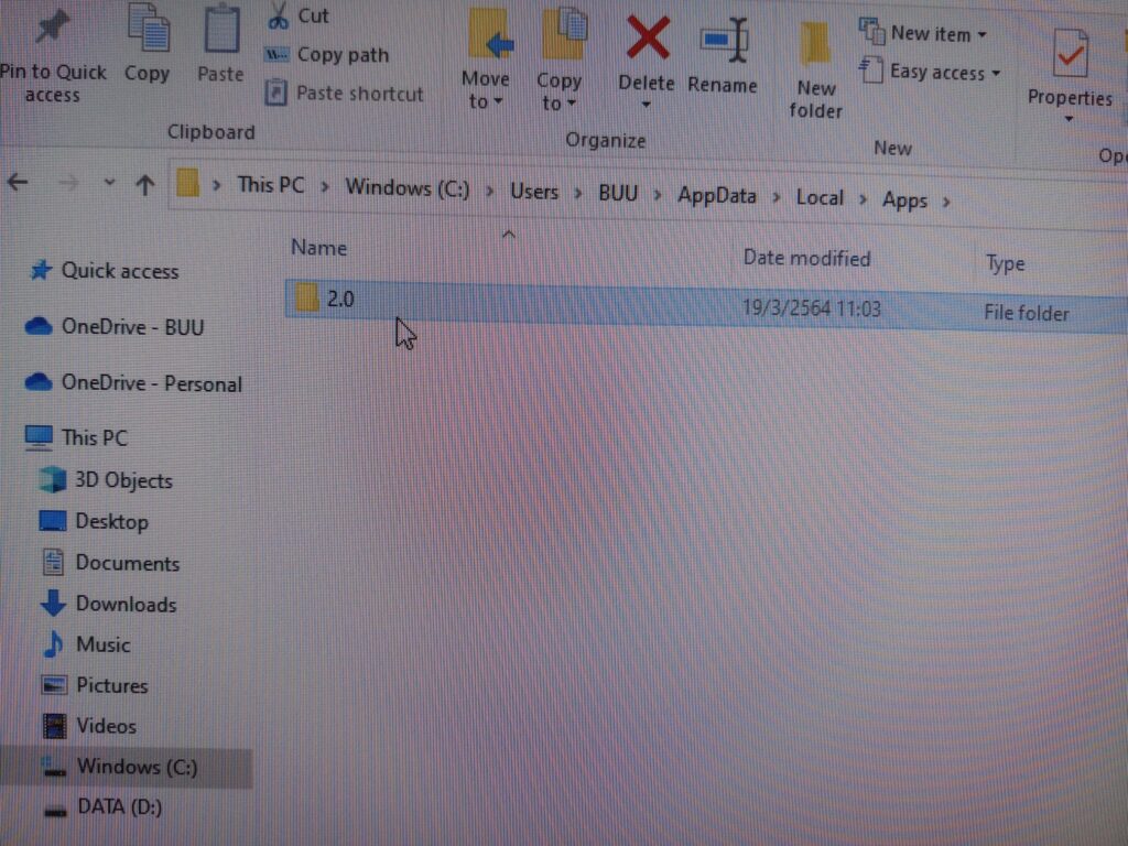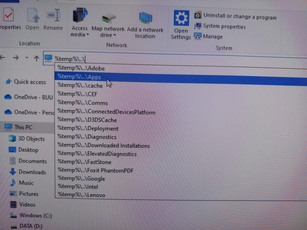 พิมพ์ %temp%\..\Apps ลงใน Quick access