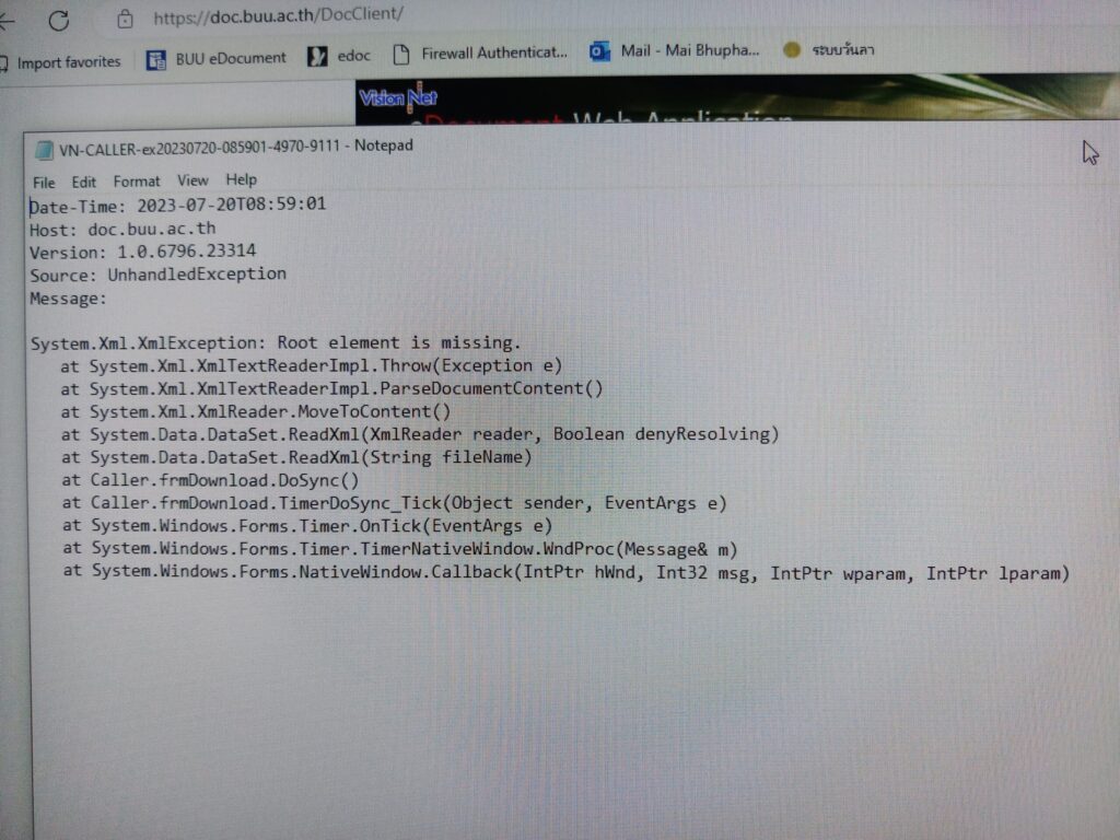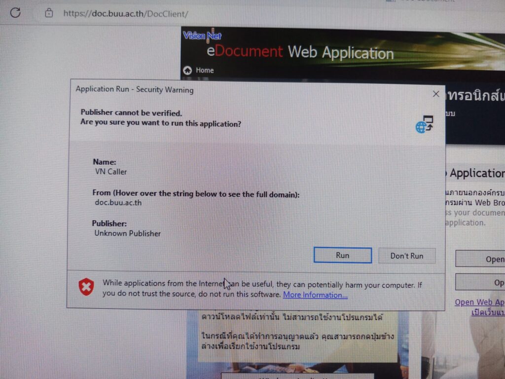 3.คลิกเรียก ระบบ e-document ขึ้นมาใช้งานแล้ว error ดังรูป