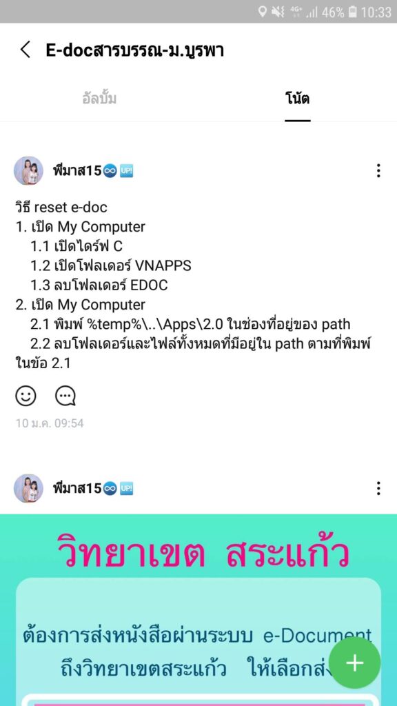 วิธีการ แก้ไขปัญหาการใช้งาน e-document ได้โพสท์ไว้ใน ไลน์กลุ่ม E-docสารบรรณ-ม.บูรพา