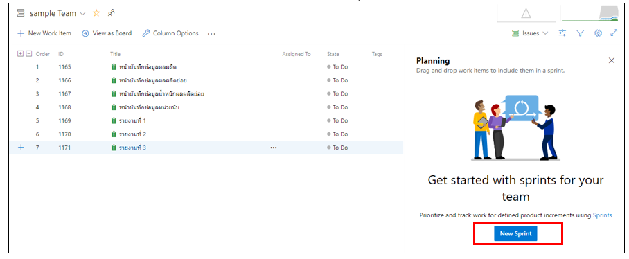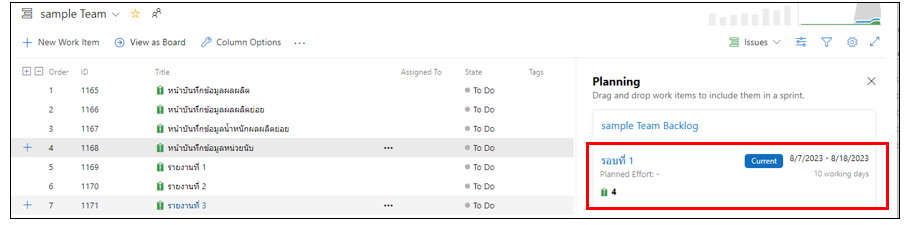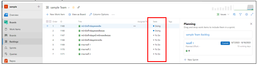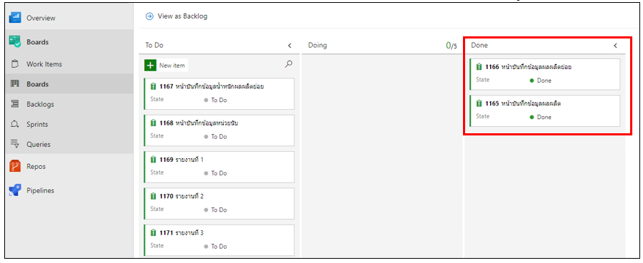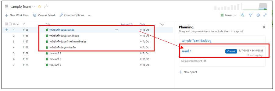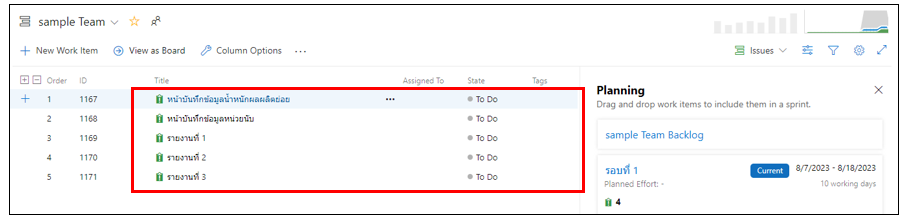 เริ่มต้นที่ถูกต้องของการตั้งค่า Backlog ใน Azure Board เพื่อการวางแผนให้สำเร็จ Posted by Chakkrit Manmuan Categories Explicit Knowledge, การจัดการความรู้ Date August 30, 2023 Azure Boards จัดเป็นส่วนหนึ่งของ Azure DevOps Services ซึ่งเป็นเซตของเครื่องมือสำหรับการพัฒนาซอฟต์แวร์บนแพลตฟอร์มของ Microsoft Azure และ Azure Boards จะเน้นไปที่การจัดการโปรเจคและงานต่าง ๆ ในโปรเจคด้วยวิธีการที่มีลักษณะคล้ายกับ Kanban boardsAzure Boards มีคุณสมบัติดังต่อไปนี้:Work Items สามารถสร้างงานต่าง ๆ เป็นหน่วยงาน เช่น เรื่องที่ต้องทำ (Tasks) ปัญหา (Bugs) หรือความต้องการ (User Stories). ซึ่งสามารถเชื่อมโยงไปยังโค้ด การทดสอบ หรืองานอื่น ๆ ที่เกี่ยวข้องได้Boards สามารถจัดแสดงงานเป็นคอลัมน์ เพื่อมองเห็นภาพรวมของสถานะการทำงาน รวมถึงการปรับเปลี่ยนสถานะงานได้อย่างง่ายดายด้วยการลากและวางBacklogs ช่วยในการจัดการรายการงานที่ยังไม่เริ่มต้นการทำ แบ่งตามลำดับความสำคัญ และช่วยในการประมาณการ Sprint หรือ Iteration ง่ายขึ้นSprints สามารถจัดการงานตามวงรอบการพัฒนา (Sprint หรือ Iteration) พร้อมกับการมองเห็นภาพรวมของงานที่ต้องทำ งานที่เสร็จแล้ว และงานที่ยังค้างอยู่ การบันทึก Backlogs เมื่อเปิด project ให้คลิกที่เมนู Backlogs สังเกตใน project จะมีการสร้างรอบการพัฒนาครั้งแรก (Sprint 1) ให้เสมอ ถ้าเพิ่มงานใหม่ (New work item) จะถูกสร้างใน Sprint 1 นี้ทันที ดังนี้ให้ลบ Sprint 1 ออกก่อน 2. คลิกที่ Project settings 3. คลิกที่ Project configuration จากนั้นให้ลบ Sprint 1 ออก 4. หลังจากนั้นคลิกที่ Backlogs เพื่อเพิ่มงานที่ต้องทำทั้งหมดของ project 5. โดยทำการ คลิกปุ่ม +New Work item จากนั้นจะช่องให้เพิ่มรายการของงาน พิมพ์ชื่อแล้วให้กด enter 6. ต่อจากนั้นให้คลิกเพื่อ เพิ่มรอบของการทำงานใหม่ โดยคลิกที่ปุ่ม New Sprint ป้อนข้อมูลชื่อของ sprint วันที่เริ่มต้น และวันที่สิ้นสุด จากนั้นกดปุ่ม Create 7. ให้คลิกลากงานที่ทำ ไปวางที่การทำงาน รอบที่ 1 ที่ได้สร้างไว้ สังเกตจะมีจำนวนของงานปรากฏหลังจากลากวางแล้ว ใต้ชื่อรอบที่ 1 เมื่อคลิก ชื่อรอบที่ 1 จะแสดงรายการของงานทั้งหมดที่อยู่ใน sprint นี้ ดังภาพ การดูภาพรวมของงานใน Backlogs 1. คลิกเมนู Backlogs ดูสถานะของงาน เช่น Doing To Do 2. กรณี ทำงานเสร็จและย้ายไปคอลัมน์ Done เมื่อกลับไปหน้า Backlogs จะไม่ปรากฏงานที่อยู่ในคอลัมน์ Done 3. คลิกหน้า Backlogs จะแสดงงานทั้งหมดที่ยังดำเนินไม่เสร็จ (งานยังไม่ได้ลากวางที่คอลัมน์ Done) Share: Chakkrit Manmuan Previous post การสร้างตัวติดตั้ง OS Flex ด้วย USB Drive August 30, 2023 Next post การใช้ AI สร้างภาพ (AI image generator) August 30, 2023 You may also like ถอดบทเรียน การคิดค่าปรับผิดสัญญางานจ้างเหมาทำความสะอาด ของสำนักคอมพิวเตอร์ March 4, 2026 จากการปฏิบัติงานพัสดุสำนักคอมพิวเตอร์ มหาวิทยาลัยบูรพา ที่ผ่านมาพบปัญหาเรื่องของการบริหารสัญญางานจัดจ้างเหมาทำความสะอาดอาคารสำนักคอมพิวเตอร์ และ