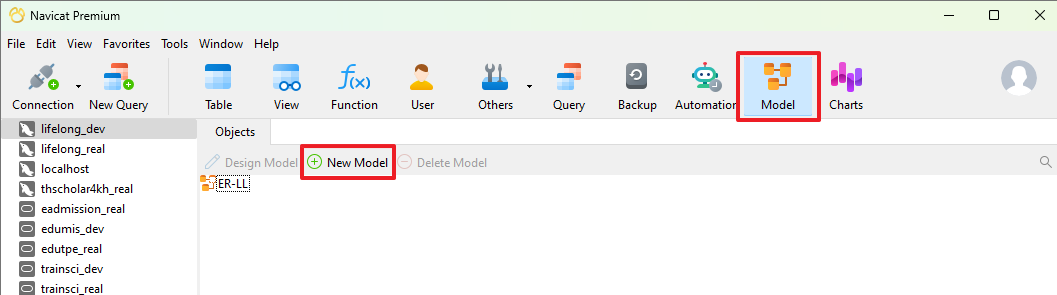 ๑) คลิกที่ Model แล้วคลิกที่ +New Model