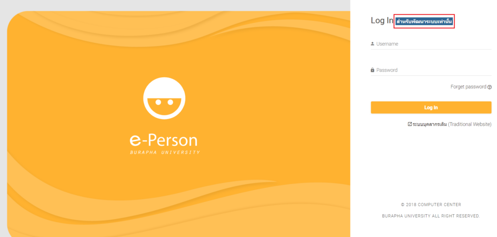 4. หลังจากได้ทำทุกขั้นตอนเรียบร้อยแล้ว ให้เปิดหน้าเว็บไซต์ของการเข้าสู่ระบบบนเครื่องเซิร์ฟเวอร์ที่อยู่ระหว่างพัฒนา (Development) ผลลัพธ์ที่ได้ แสดงดังภาพที่ 4