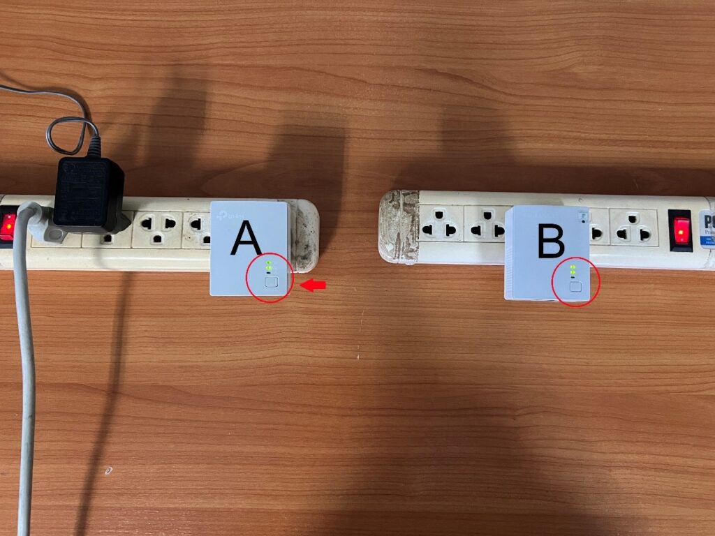 หลังจากเสียบ Powerline ตัว A และ B แล้ว ให้รอไฟสถานะโชว์ขึ้นมาเพื่อให้เห็นว่า ทั้ง 2 ตัวนั้น สามารถติดต่อกันได้โดยผ่านระบบไฟฟ้าภายในบ้านเรียบร้อยแล้ว