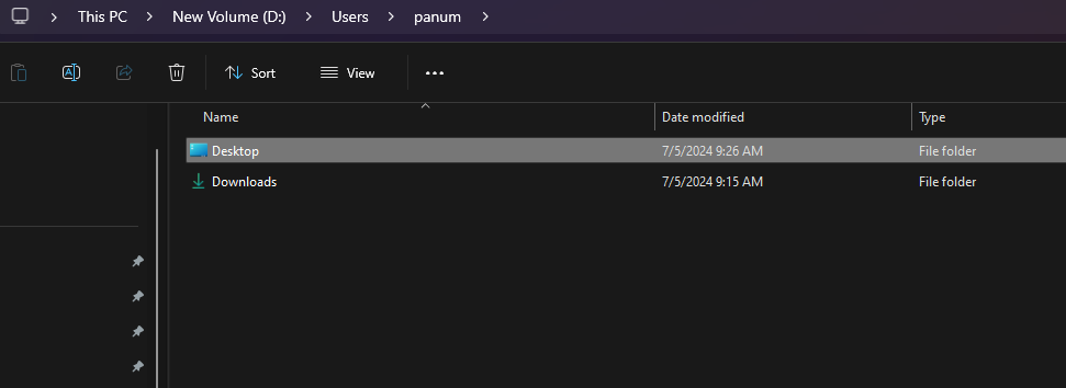 3.ทำการเปลี่ยน Drive เป็น D:\Users\ชื่อ\Desktop