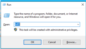 - กด Win+R แล้วพิมคำสั้ง MRT แล้วกด OK